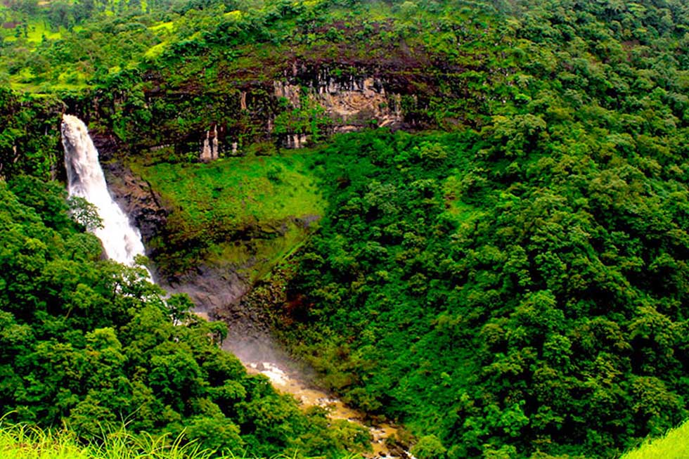 Dugarwadi waterfall is 30 kilometres from Nashik on Trimbakeshwar road and 2 kilometres from the Jawhaar road. In monsoon season, people are advised to take care as the water level suddenly rises.